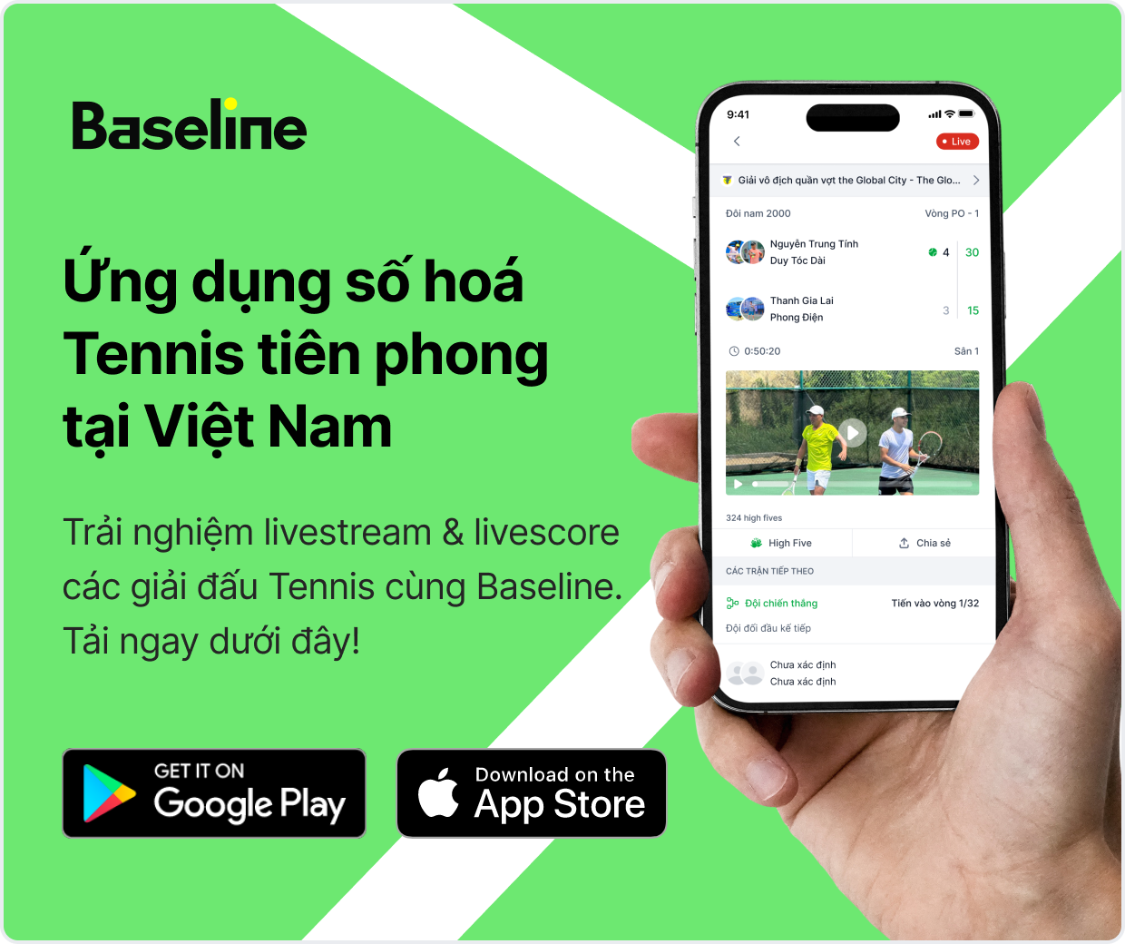At Baseline, we're redefining how racquet sports competitions are run — from registration to live scoring, streaming, and results. Built specifically for Pickleball, Tennis, and Badminton, our app is trusted by thousands of players, referees, and organizers across Southeast Asia.